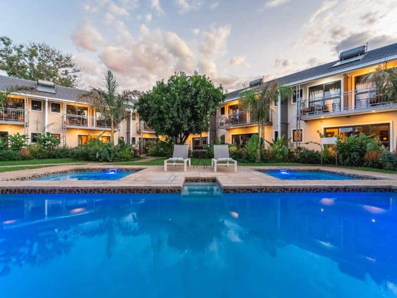 Our crowning glory is our lush, verdant garden – a true oasis in the center of Victoria Falls town. The vibrant tropical plants and shaded areas create a peaceful retreat where guests can unwind and reconnect with nature. Within this green sanctuary, you’ll find our main swimming pool with two splash pools, an on-site restaurant serving Afro-fusion cuisine, and a welcoming pub overlooking the pool area.