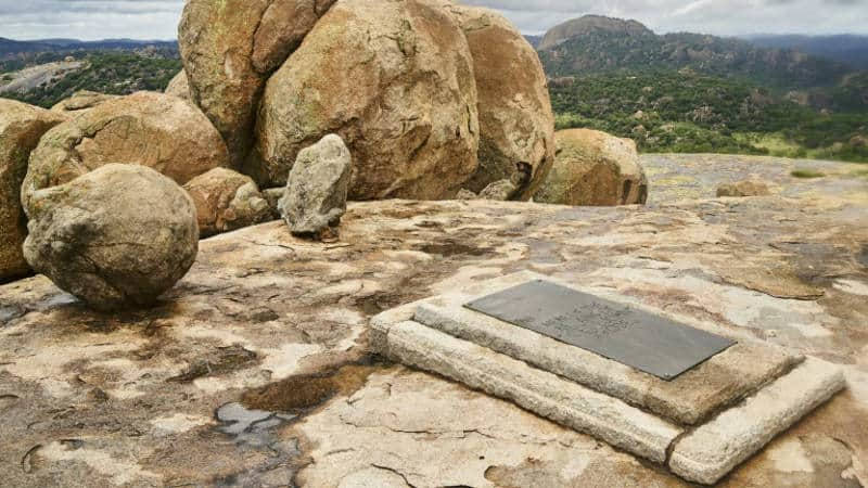 The hill on which Cecil Rhodes is buried is called Malindidzimu, the legendary place of benevolent spirits, and here he used to rest and dream of his beloved Rhodesia (now Zimbabwe) and its development, and of further expansion to the north of Africa.