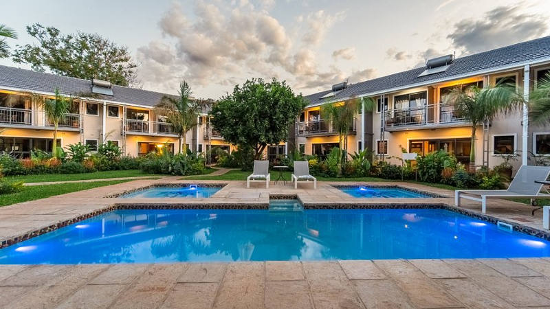 Our crowning glory is our lush, verdant garden – a true oasis in the center of Victoria Falls town. The vibrant tropical plants and shaded areas create a peaceful retreat where guests can unwind and reconnect with nature. Within this green sanctuary, you’ll find our main swimming pool with two splash pools, an on-site restaurant serving Afro-fusion cuisine, and a welcoming pub overlooking the pool area.
